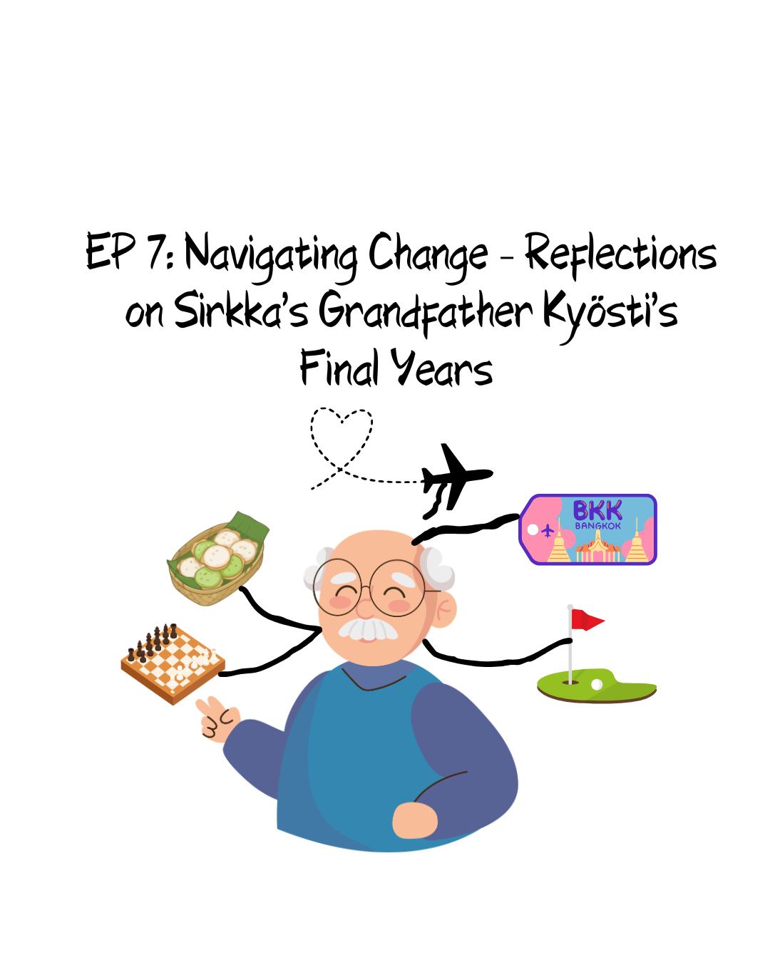 In this moving episode, Sirkka shares the story of her grandfather, Kyösti, a pilot who spent his career navigating the skies between Helsinki and Bangkok. She paints a portrait of a man who was as meticulous and professional in the cockpit as he was adventurous and warm-hearted at home. Sirkka recalls the excitement of her childhood when Kyösti would return from the bustling markets of Thailand, bringing back exotic treats for his grandchildren to taste—small, sweet gestures that spoke volumes about his love for his family and his ability to find joy in the little things.
