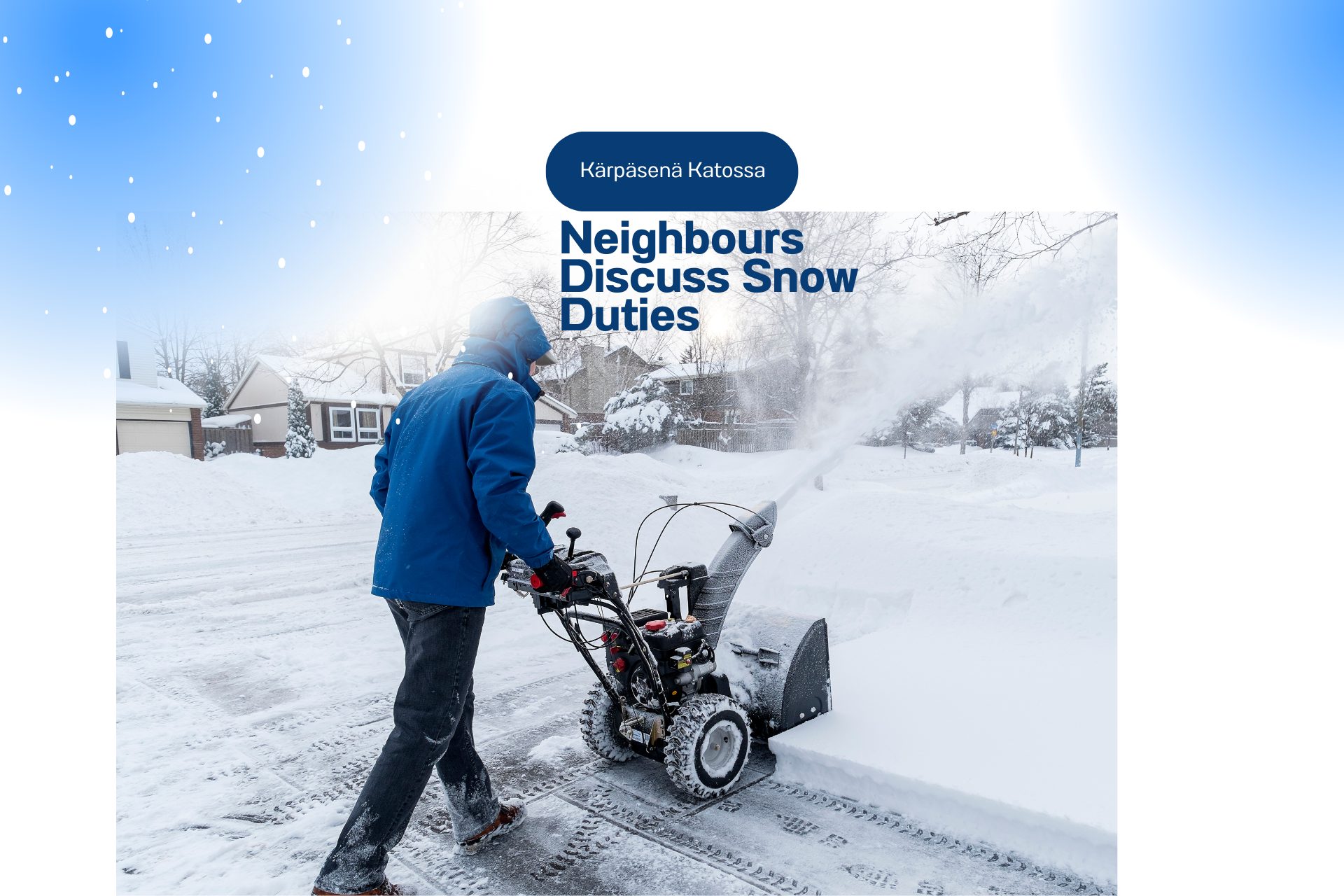 As they discuss the work rotation, it becomes clear that Suvi is the only person left standing. The rest of the neighbours are out of commission: the elderly Pirjo and Matti are deemed too old to help, and both women seem to be pinning their hopes on Henkka, who is currently sidelined with a serious case of pneumonia. While Suvi suggests hiring an outside contractor to end the misery, Satu is firm about avoiding the extra cost—despite having no intention of picking up the shovel herself.
